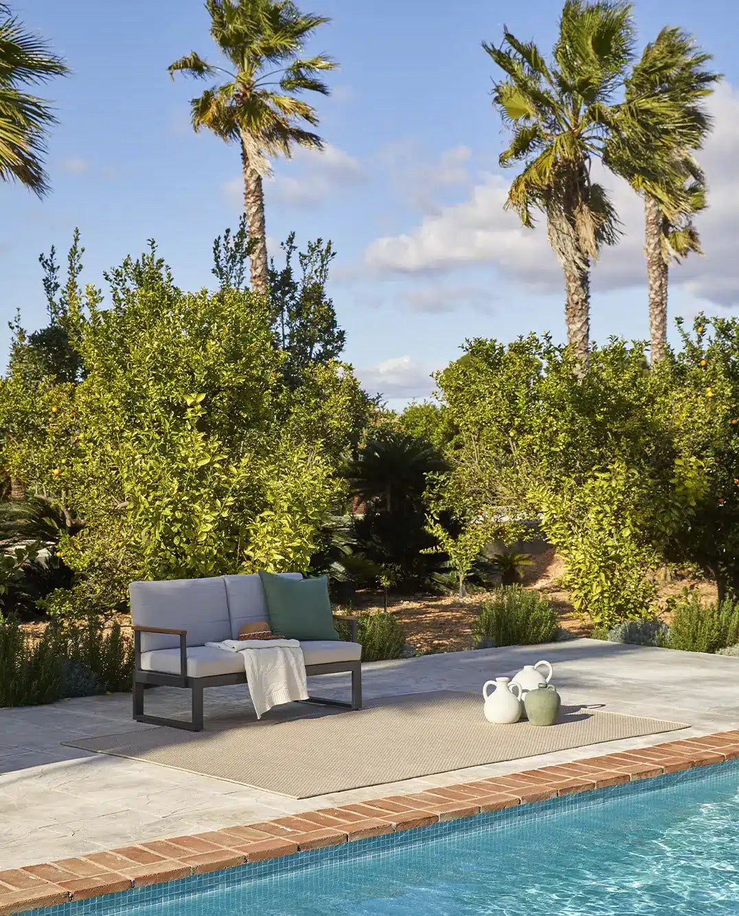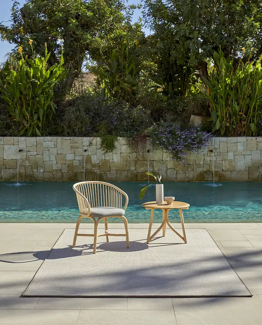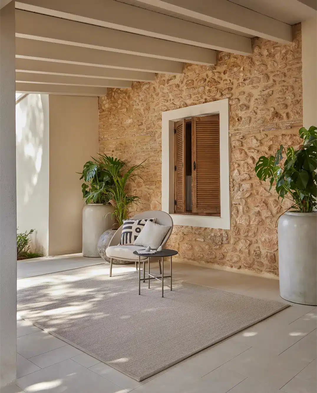 Nuestras alfombras para exterior poseen aspecto de fibras naturales como el sisal o yute pero están preparadas para colocar en zonas al aire libre. Poseen tratamiento UV incorporado, son resistentes al agua y de fácil mantenimiento. Las colecciones Terra, Maya y Nat.Premium están fabricadas a partir de PET reciclado proveniente de botellas de plástico.