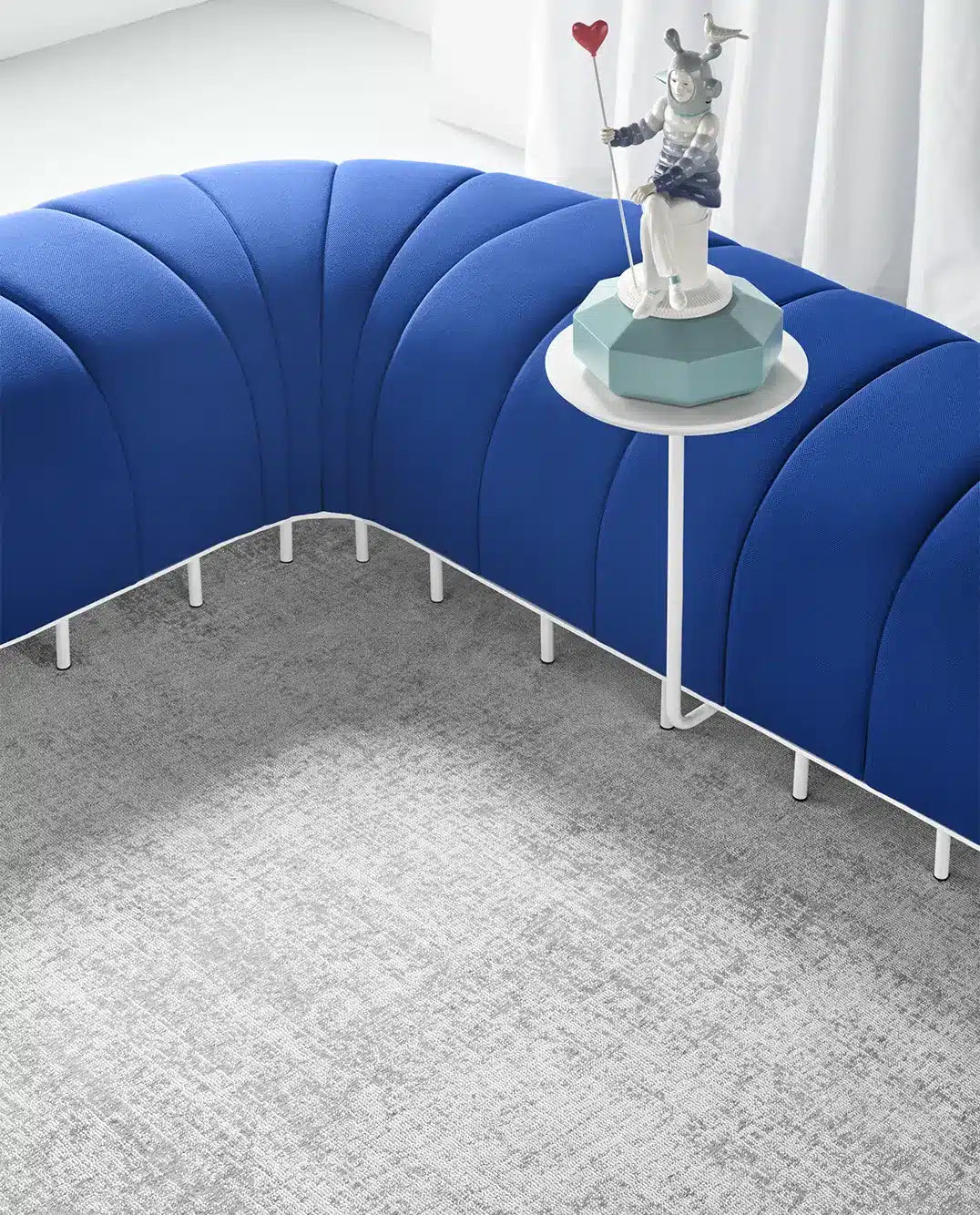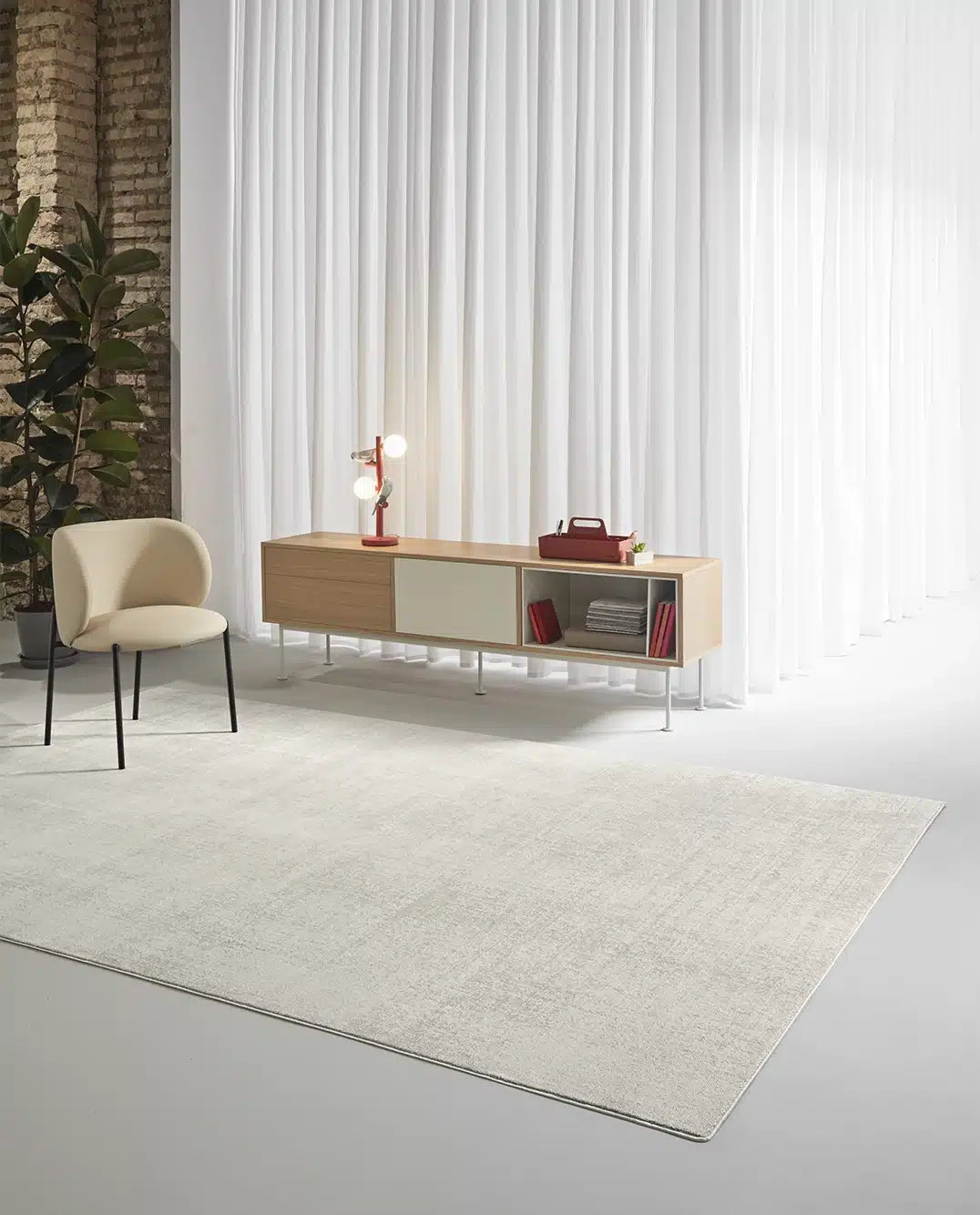 Luna es una apuesta por el medio ambiente hecha a partir del nylon de redes de pesca recogidas en el océano. Se trata de un tapete de aspecto vintage, moderna, con una textura totalmente aleatoria de corte y con gran suavidad al tacto. Recuerda a fibras naturales como la seda o el tencel pero con una salvedad, tiene prestaciones muy superiores a los tejidos de siempre tanto en facilidad de limpieza como en uso, que hacen que este modelo de alfombra sea ideal para hoteles y boutiques. Disponible en 12 colores puedes elegir el que más se adapte a lo que quieres transmitir.