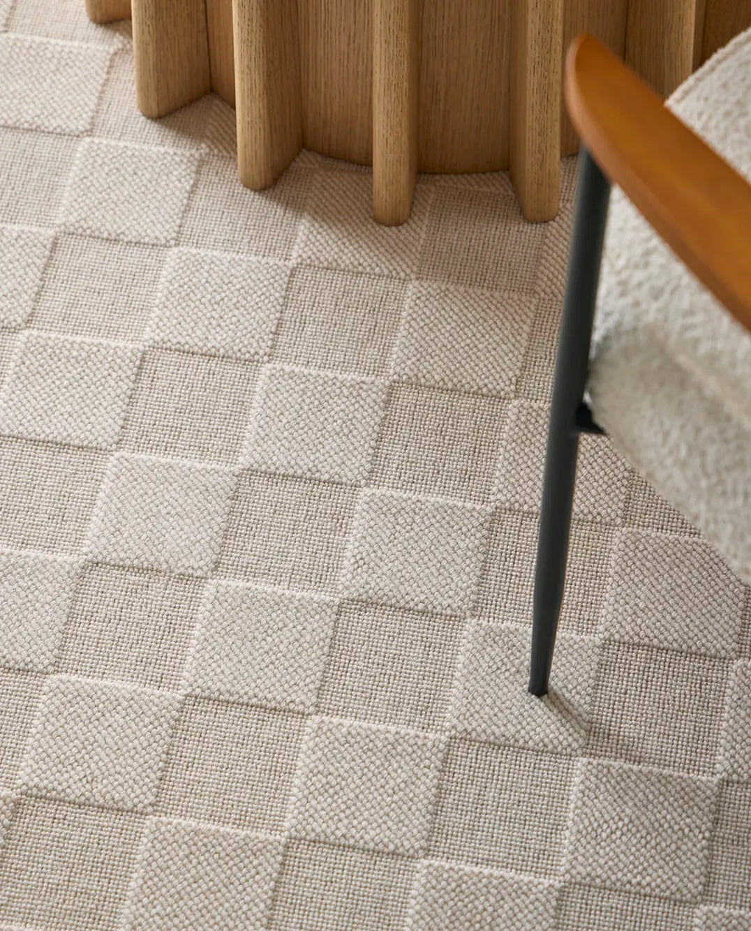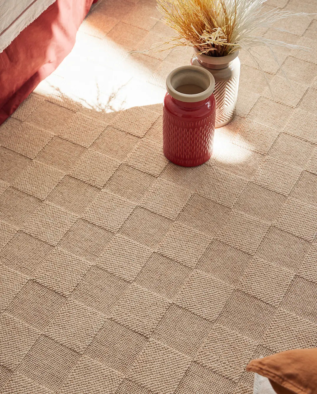 Manuela es una colección con personalidad. Confeccionada en lana natural española, su diseño de cuadrícula con bucles a dos alturas aporta una estética definida y moderna a cualquier espacio. Disponible en cuatro tonos neutros, que van desde beiges cálidos hasta tonos tierra, Manuela es versátil y capaz de adaptarse a cualquier entorno sin perder su estilo. Además, puedes personalizarla a medida, ya sea como alfombra o tapete, para que encaje perfectamente en tu hogar. Manuela combina funcionalidad y diseño para quienes buscan durabilidad y carácter en una pieza.